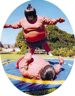 Sumo Wrestling Sumo wrestling has long been the favorite for corporate events, grad night parties, church and school events. Contestants put on hilarious foam filled suits complete with top knot wig and miswashi diaper. start the match and watch the wrestlers try to push their opponent to the floor. This is a spectator sport that will bring the crowd to the floor! 30 people per hour can participate. Dimensions (in ft.): 25 x 25