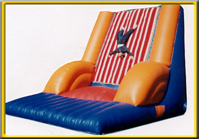 | Description: 20 years ago, this was the game that started the interactive craze! Participants wear a jump suit made of Velcro, run towards the fully inflatable wall, and stick upside down or in what ever position they end up end. This is a very popular game, and nearly 60 people per hour can play. Hours of fun and laughs. |